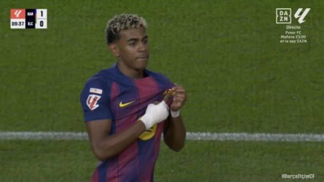 Ngày 3 tháng 11 – Trong trận đấu vòng 11 La Liga, Barcelona đã đánh bại Elche với tỷ số 3-1, và ngôi sao 18 tuổi Yamal ghi bàn mở tỷ số cho đội. Khác với các động tác ăn mừng "đăng quang" trước đó, lần này Yamal dùng miệng cắn vào logo Barcelona trên ngực và trượt gối, ăn mừng cùng đồng đội Balde, người đã có đường chuyền cho anh. 🎯