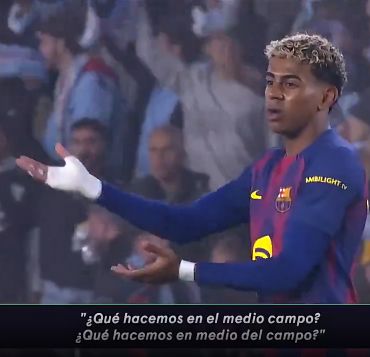 Ngay sau khi Celta ghi bàn mở tỉ số, thần đồng 18 tuổi Yamal bộc lộ sự thất vọng và nói thẳng: “Tiền vệ của chúng ta đang làm gì vậy?”